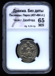 Драхма. Без даты. Сасаниды. Пероз. В Слабе® MS 65»» Ag UNC 60 RusZ 1030