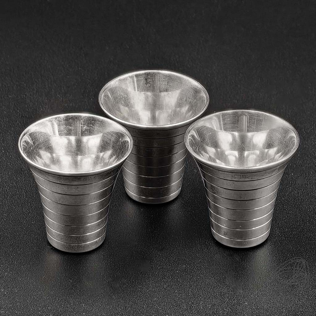 Стопки. Комплект 3 предмета. Клейма К. Ф 925 голова женщины. Высота 4,0 см., общий вес 86,7 гр. Кольчугино. Состояние отличное