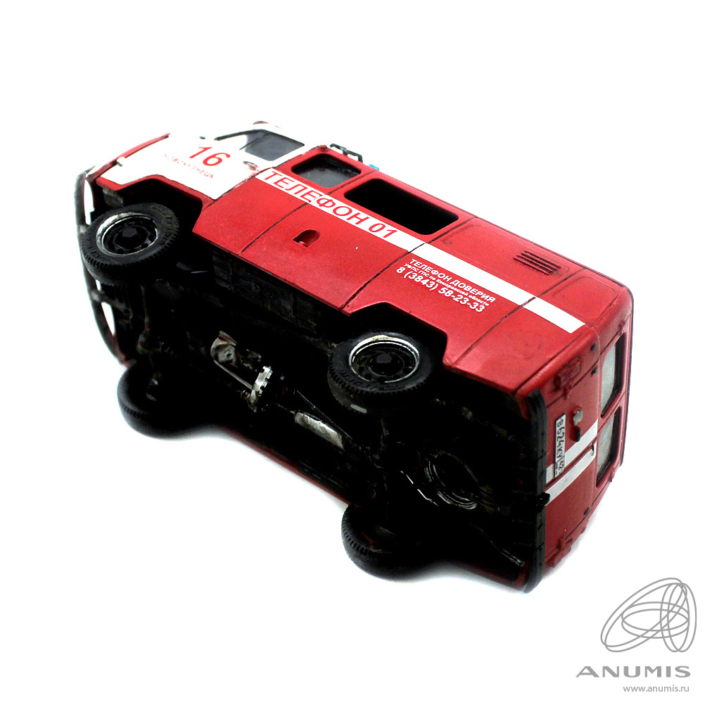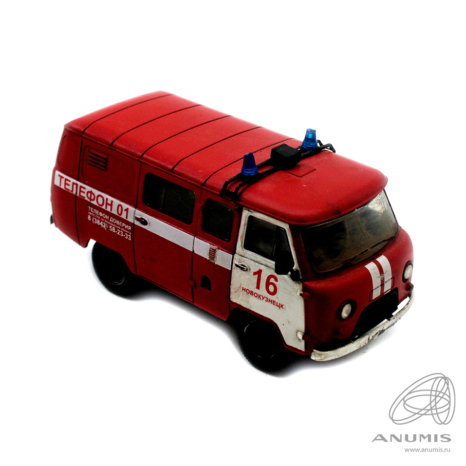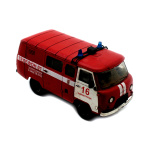 Модель автомобиля УАЗ пожарная служба. Размер 10×5 см. колеса приклеены