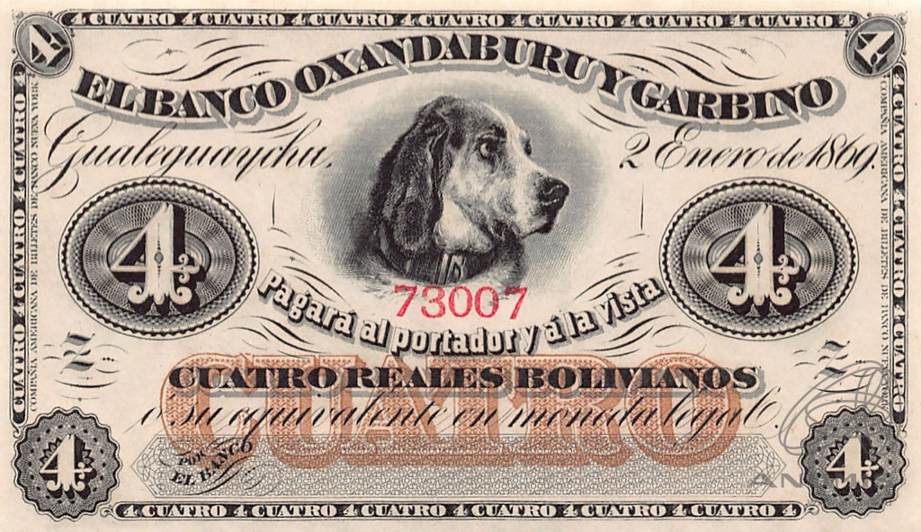 Банкнота «4 реала 02.01.1869» (Аргентина)