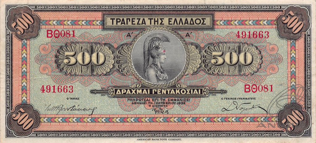 500 драхм (Pick: # 114) 1932