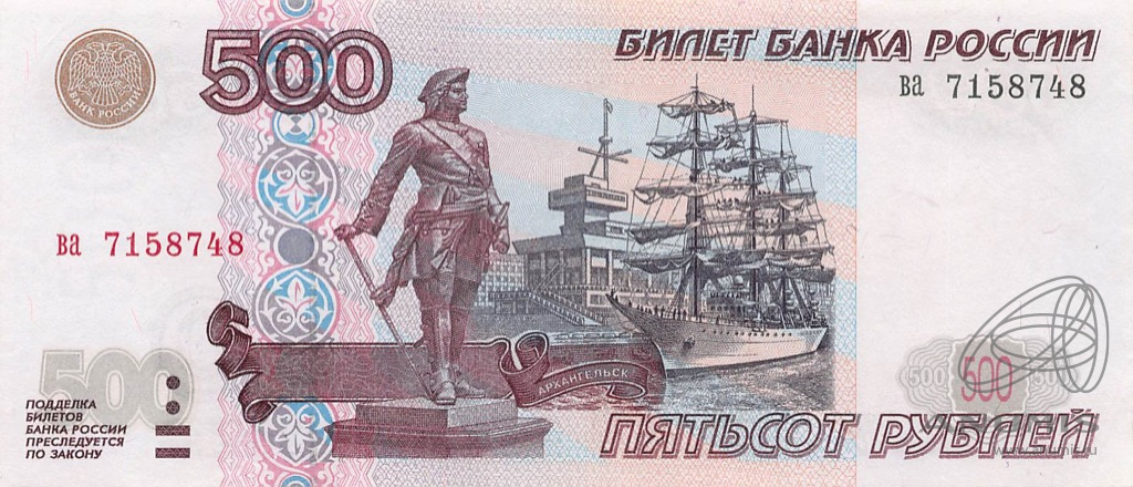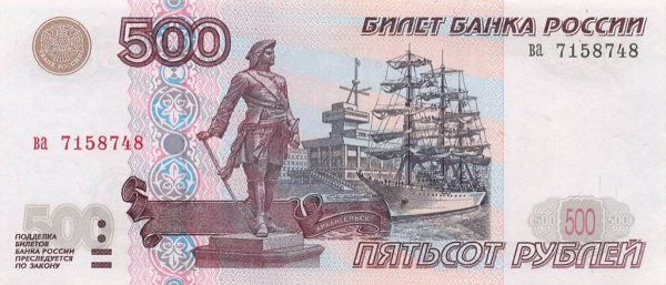 Банкнота регулярного выпуска: 500 рублей 1997 года. Билеты Банка России 1997 г. Российская Федерация: Россия современная (1997 — 2020).