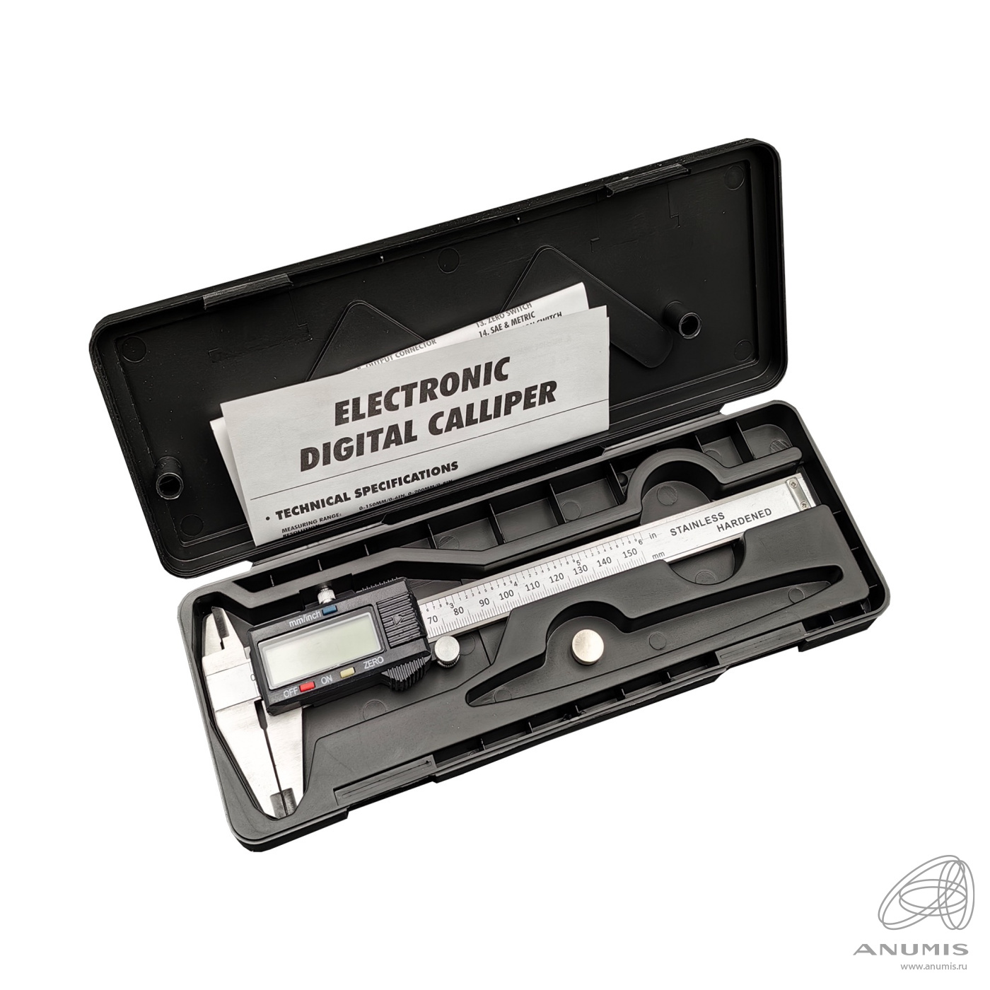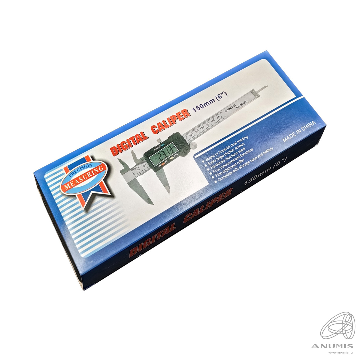 Четыре функции измерения: внешний, внутренний, глубина, шагю Ролик для точной регулировки. С кейсом для хоанения и батарейкой. Диапазон измерений: 0−150мм (0−6 дюймов)