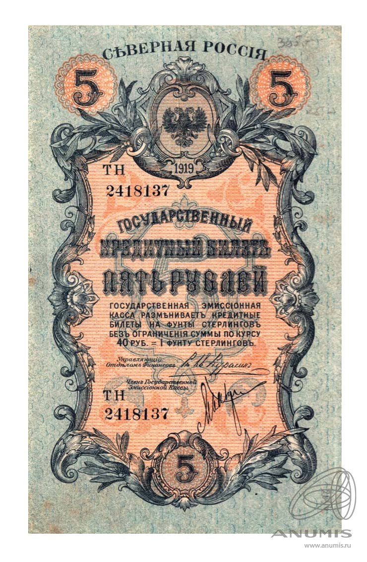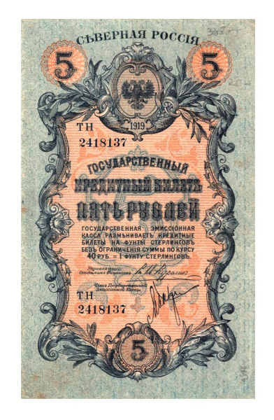 5 рублей — Северная Россия. 1919 — 1920 г. (не выпущены). 1919