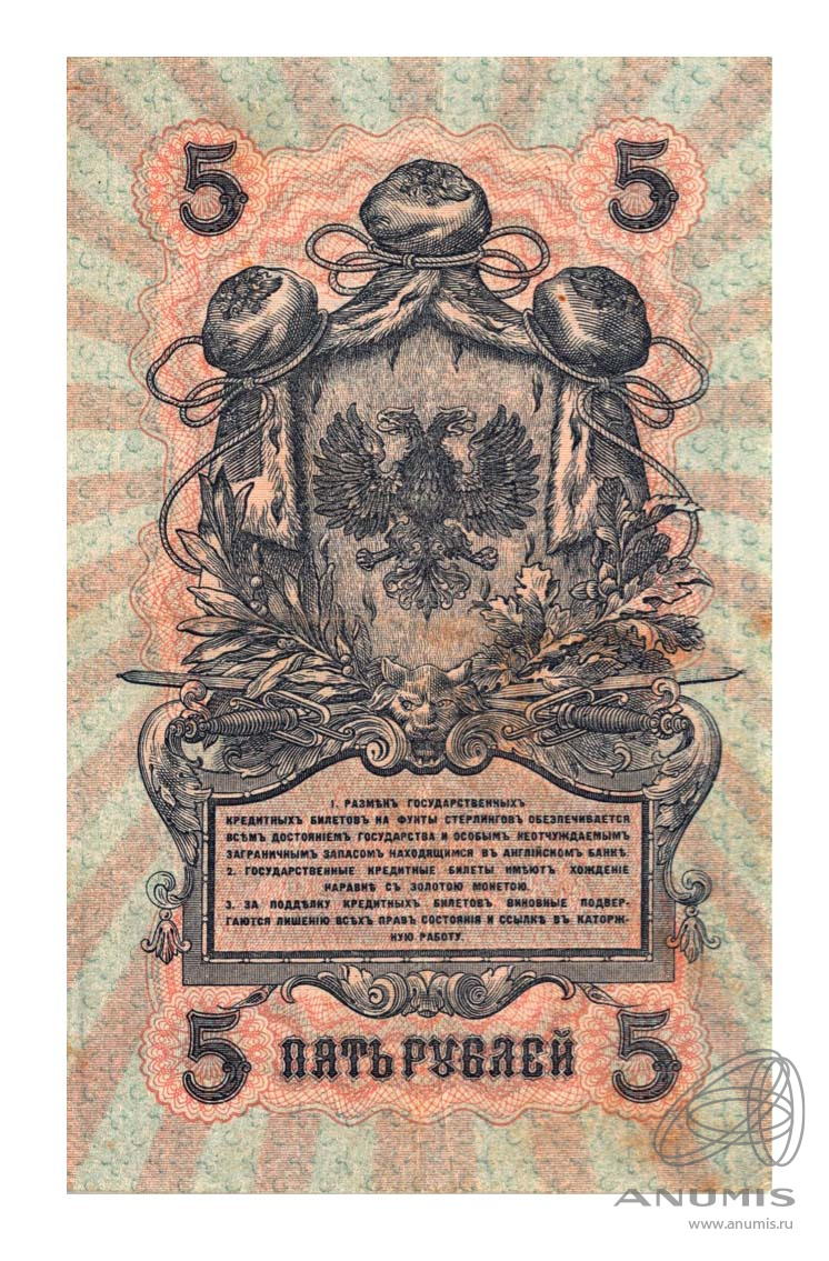 Банкнота специального выпуска: 5 рублей 1919 года «Государственные кредитные билеты 1919 — 1920 г. (не выпущены). Вокруг Св. Георгия гербы на реверсе». Временное Российское Правительство. Государственные кредитные билеты 1919 — 1920 г. (не выпущены). Российская Империя/РСФСР: Гражданская война (1917 — 1923).